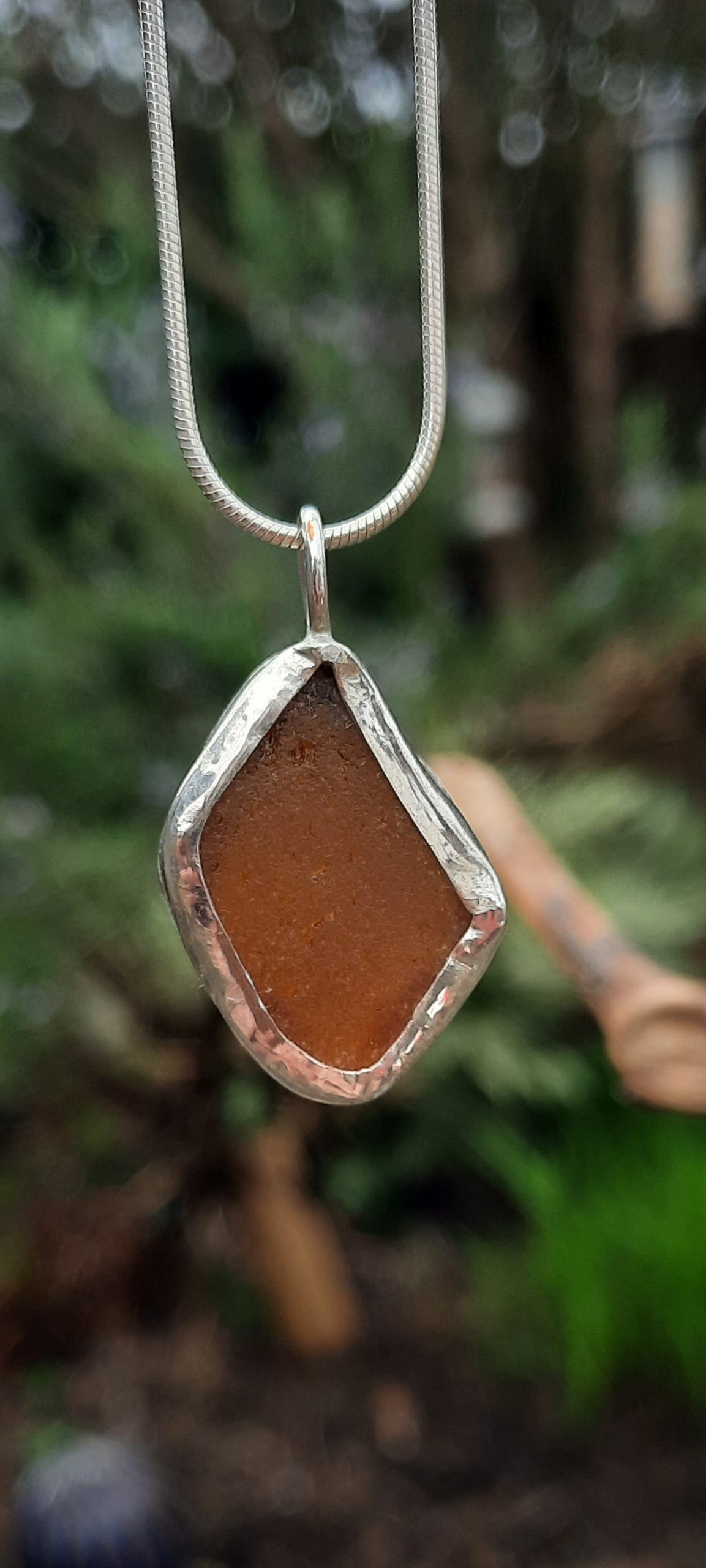 Brown Seaglass Bezel Set Pendant