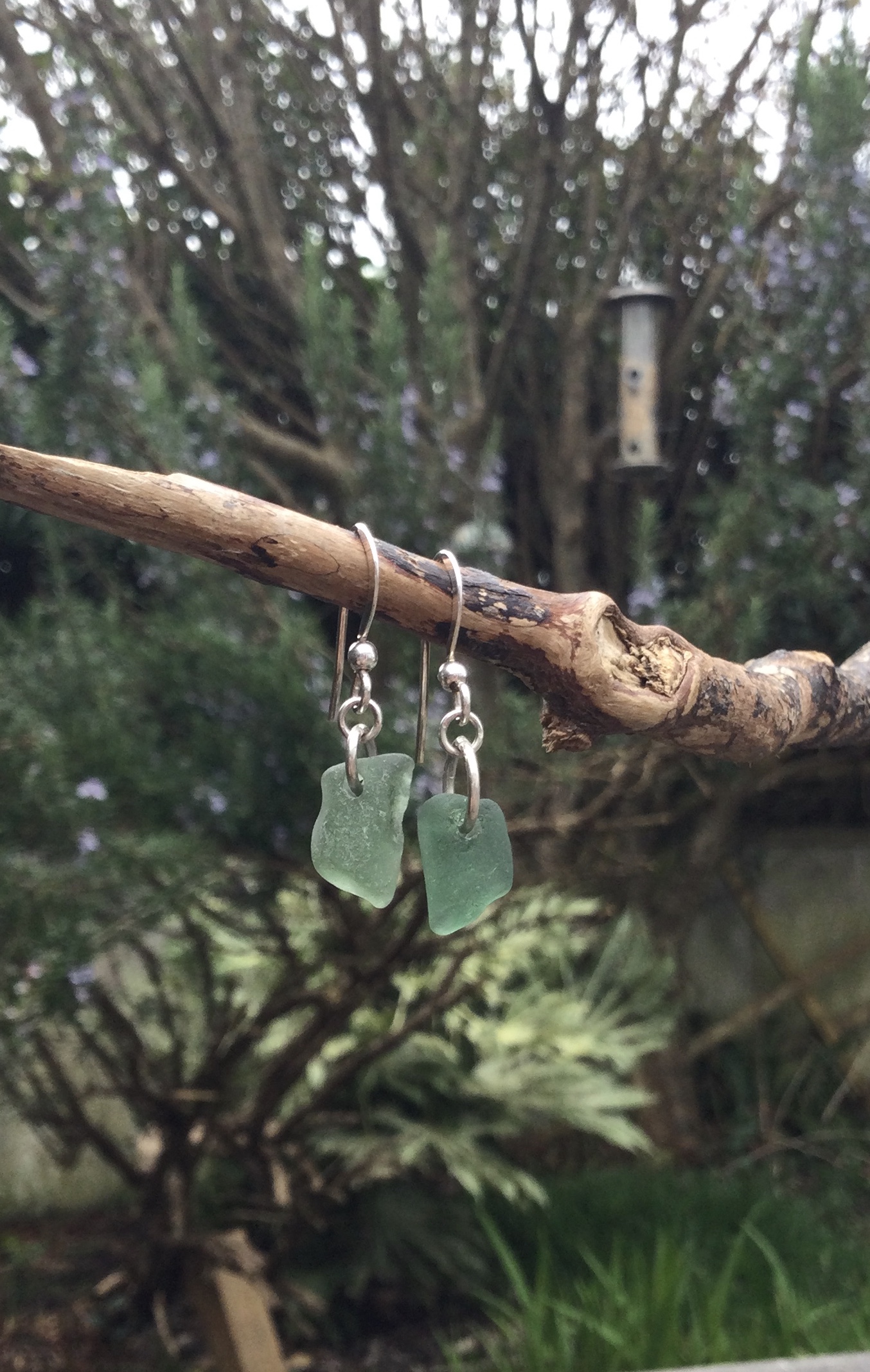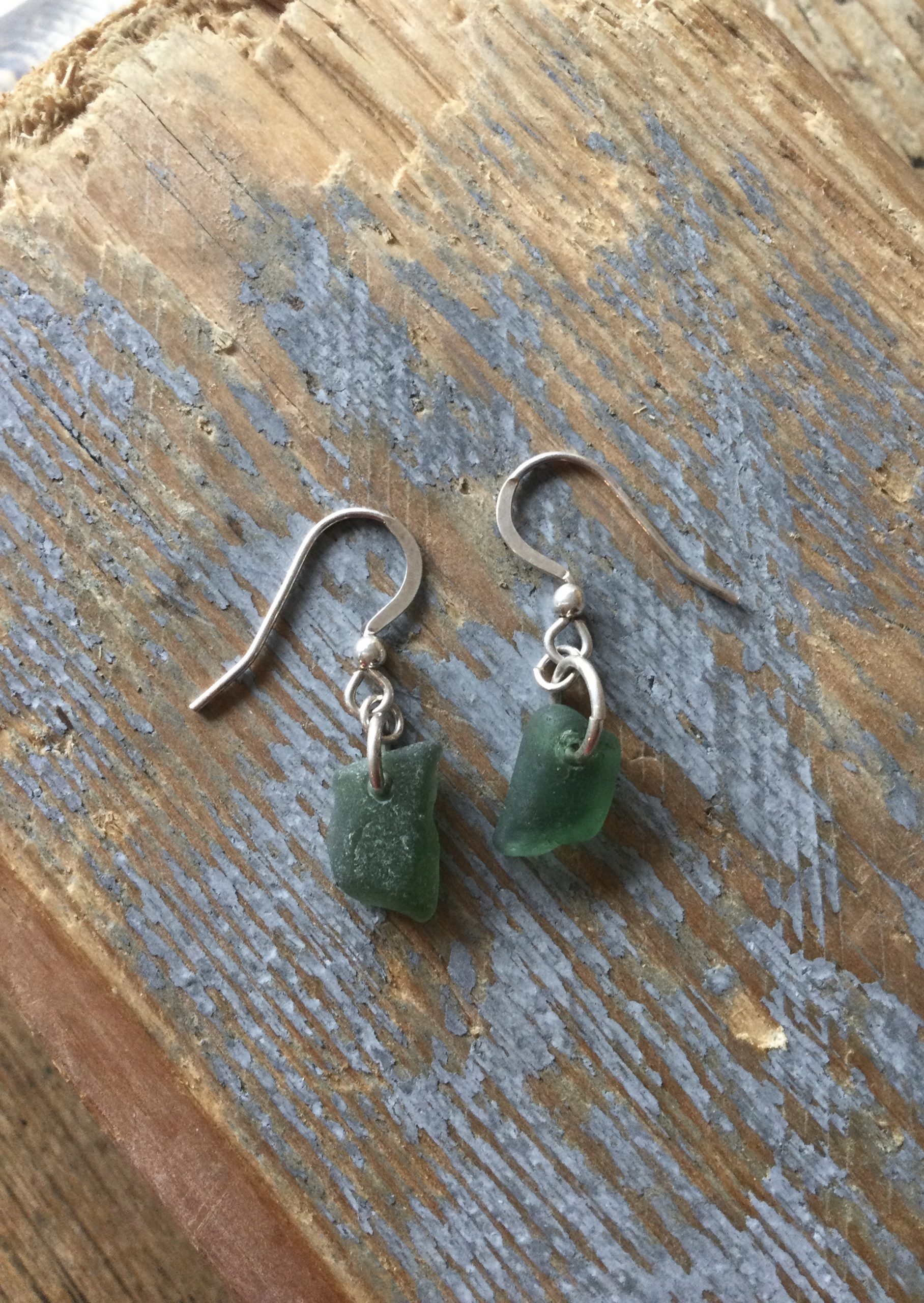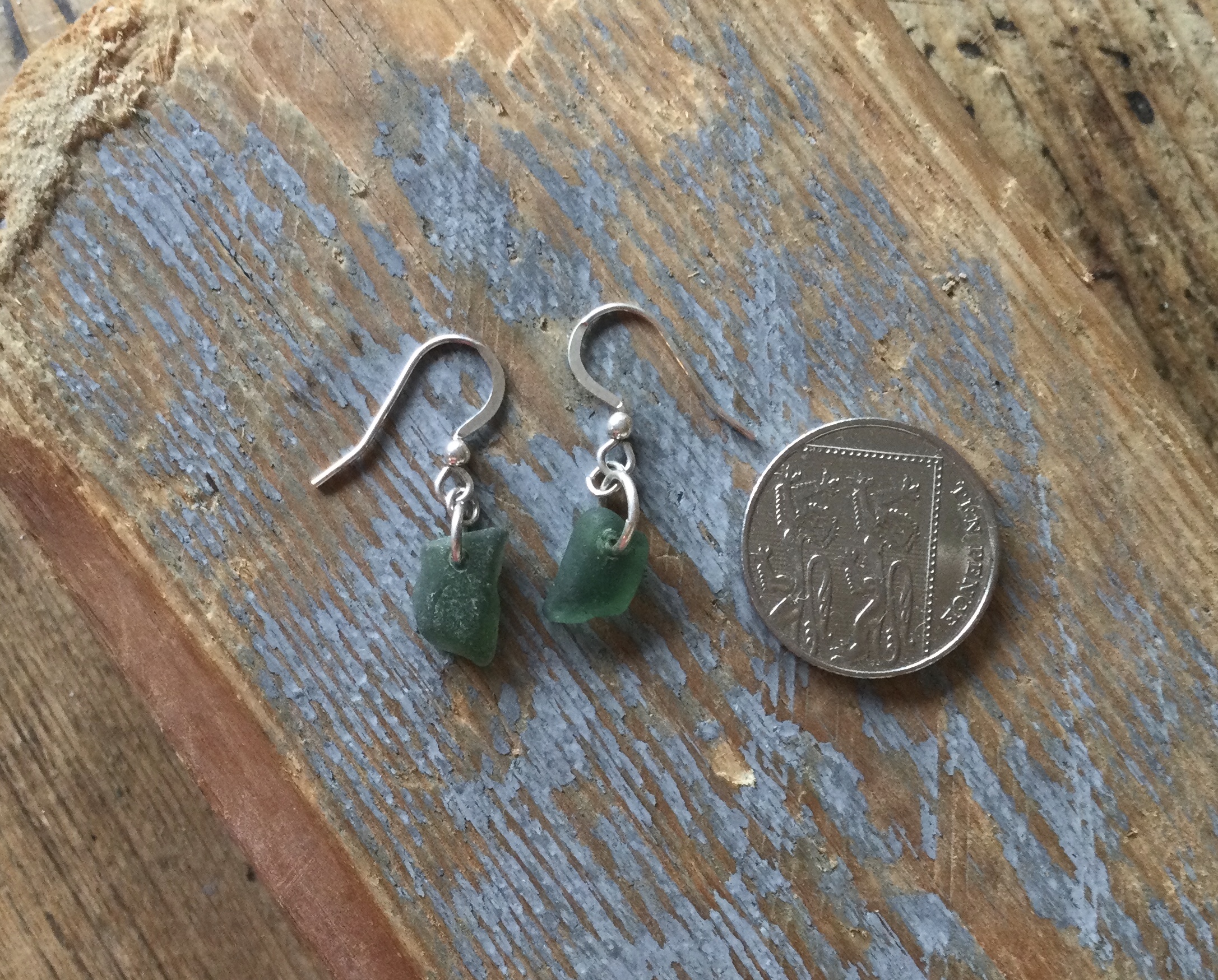 Two well-matched nuggets of less common coloured, Teal Green Seaglass, have been carefully drilled and simply made in to a stunning pair of earrings.