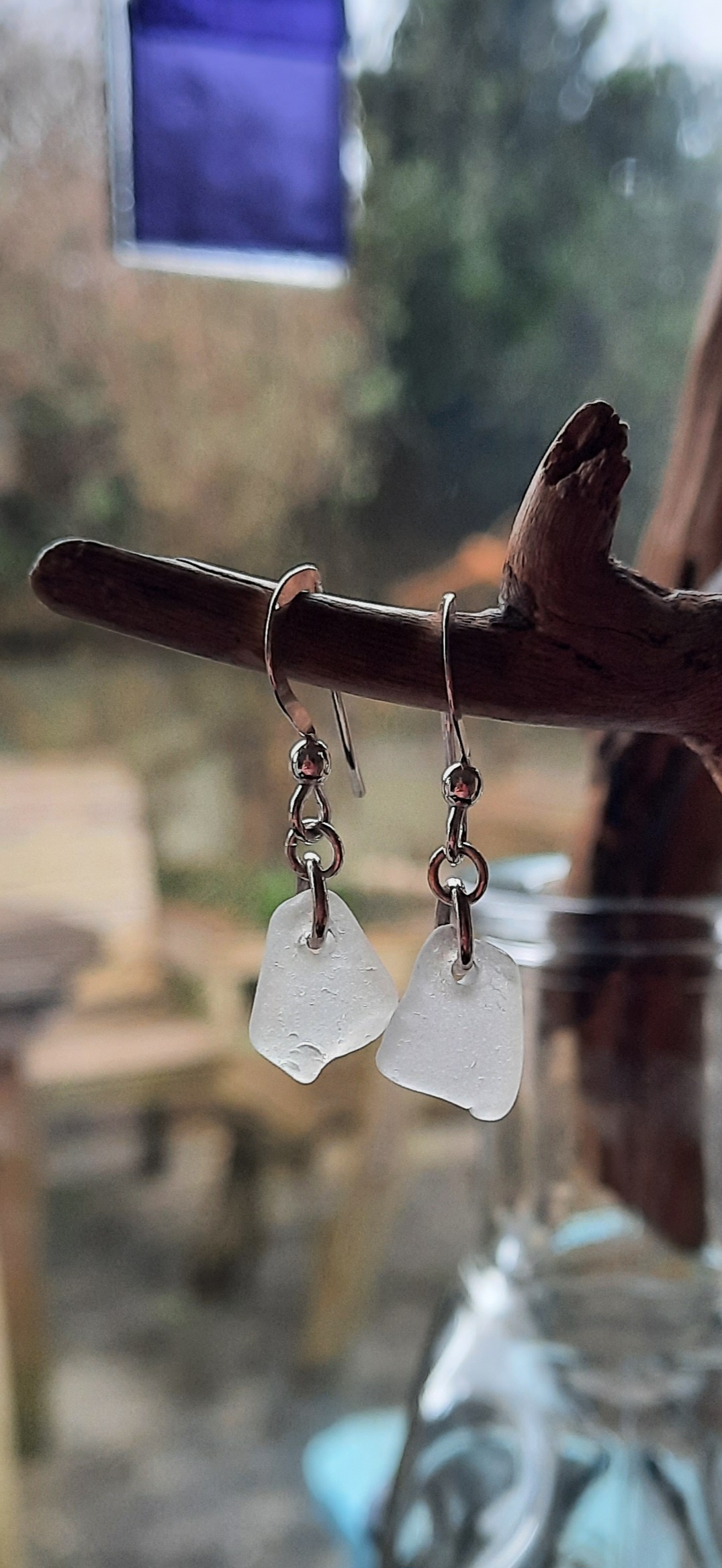 White Seaglass Earrings