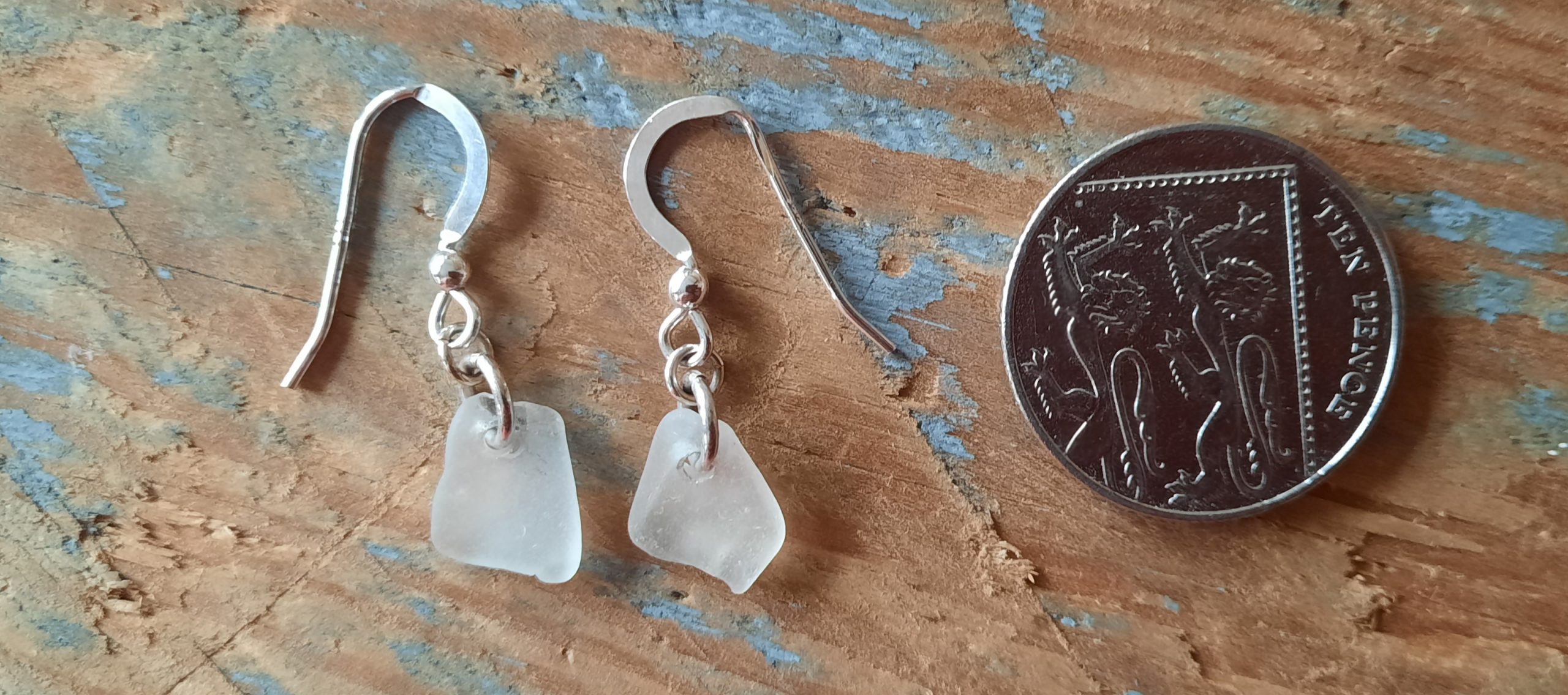 Two well-matched nuggets of White Seaglass, have been carefully drilled and simply made in to a stunning pair of earrings.